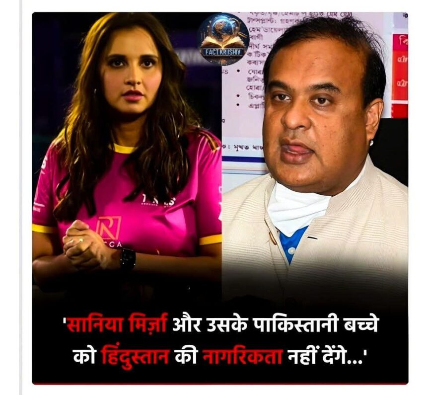 सानिया मिर्जा और शोएब मलिक का तलाक हो गया है. शोएब ने पाकिस्तानी अभिनेत्री सना जावेद के साथ तीसरा निकाह कर लिया है. इस बीच असम के सीएम हिमंता बिस्वा…