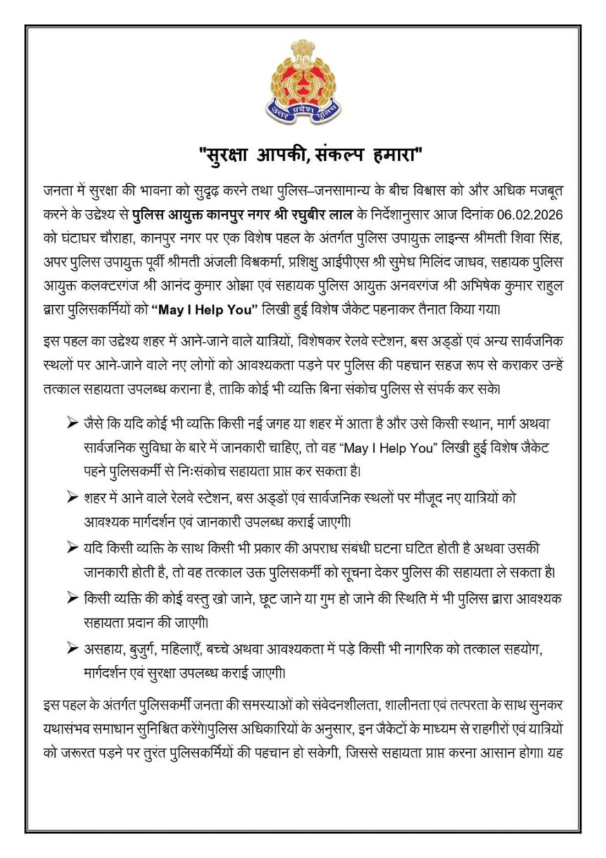 कानपुर पुलिस की नई पहल: ‘May I Help You’ जैकेट में तैनात हुए पुलिसकर्मी, यात्रियों और आजन को मिलेगी तुरंत मदद