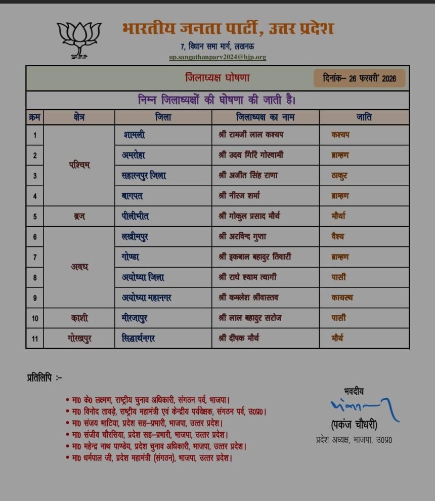*भाजपा जिलाध्यक्षों की सूची जारी…*