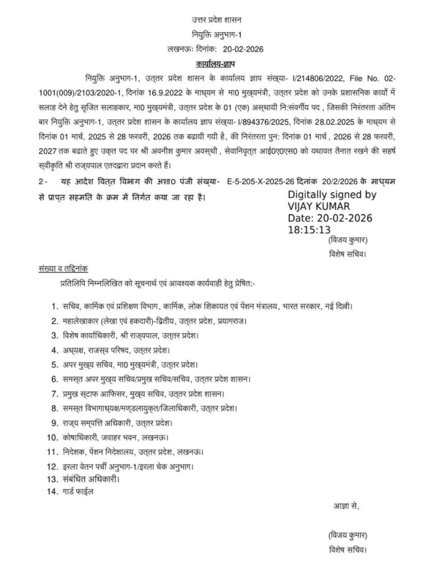 मुख्यमंत्री योगी आदित्यनाथ के सलाहकार अवनीश कुमार अवस्थीमुख्यमंत्री योगी आदित्यनाथ के सलाहकार अवनीश कुमार अवस्थी को एक साल का सेवा विस्तार पुनः मिला। को एक साल का सेवा विस्तार पुनः…