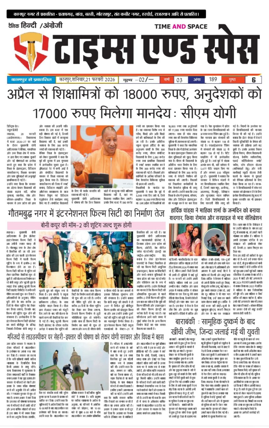 *शनिवार, 21 फरवरी 2026 के मुख्य समाचार*