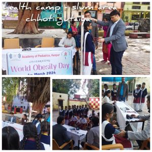 बाल रोग एच,ओ,डी डॉक्टर ए के आर्या ने बताया कि बच्चों मोटापा एक बड़ी समस्या बनता जा रहा है न बताया कि समय रहते उसका का नियंत्रण नहीं किया जाए तो उसमें डायबिटीज लीवर एवं कोलेस्ट्रॉल के रोग बहुत कम समय पर आ जाते हैं इन समस्याओं को पकड़ना अत्यधिक आवश्यक है।। बाल रोग अकादमी प्रेसिडेंट डॉ यशवंत राव ने बताया कि आज कल की जीवनशैली देखते हुए पूरी दुनिया में मोटापा एक बड़ी समस्या बनता जा रहा है। विश्व मोटापा दिवस को मानने का बस एक ही उद्देश है कि लोगो में मोटापा के प्रति जागरूकता पैदा करना और साथ ही स्वास्थ के प्रति लोगो को सचेत करना।डॉक्टर राखी जैन वा डॉ प्रतिभा ने इस वर्ष की थीम के बारे मे विस्तार से बताया। रामा मेडिकल कॉलेज में डॉक्टर राज तिलक, डॉक्टर वी के टंडन, डॉक्टर आनन्द अग्रवाल वा डॉक्टर निधिका पाण्डेय मोटापा पर कार्यक्रम वा क्विज का आयोजन किया l नारायणा मेडिकल कॉलेज में डॉक्टर वी एन त्रिपाठी, डॉक्टर यशवंत कुमार राव, डॉक्टर प्रशांत प्रियदर्शी, डॉक्टर राहुल चर्तुवेदी मोटापा पर स्लोगन प्रतियोगिता का आयोजन किया। एलेन स्कूल खलासी लाइन वा छोटी गुटैया में मोटापा पर जागरूकता कार्यक्रम आयोजित किया गया। जिसमे लगभग 80 बच्चों का स्वास्थ परिक्षण किया गया । एलेन स्कूल की प्रधानाचार्य ने बाल रोग अकादमी के इस प्रयास की सराहना की कार्यक्रम में अजय खन्ना वा स्कूल की टीचर मोजूद थी।