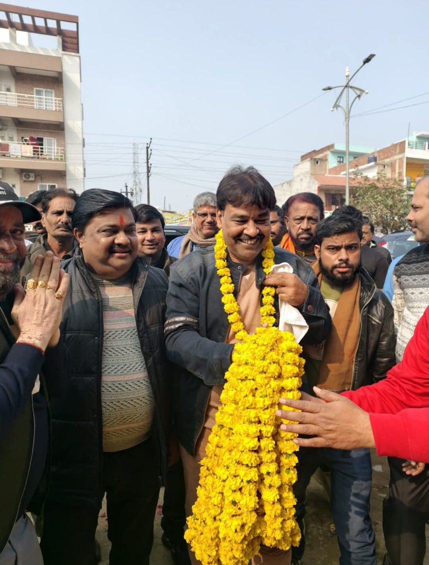 गंगाघाट के पोनी रोड चौड़ीकरण को लेकर जनता ने किया विधायक जी का स्वागत।
