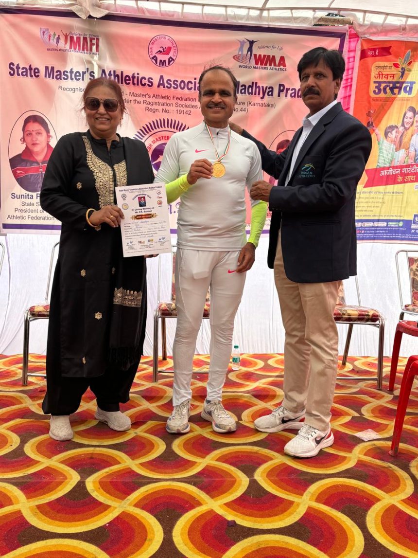 Timesandspace > देश > *राज्य स्तरीय ओपन स्टेट मास्टर ऐथलेटिक्स चैंपियनशिप 2025 में 200 मीटर रेस में स्वर्ण पदक मिला हुजूर एसडीएम विनोद सोनकिया को*