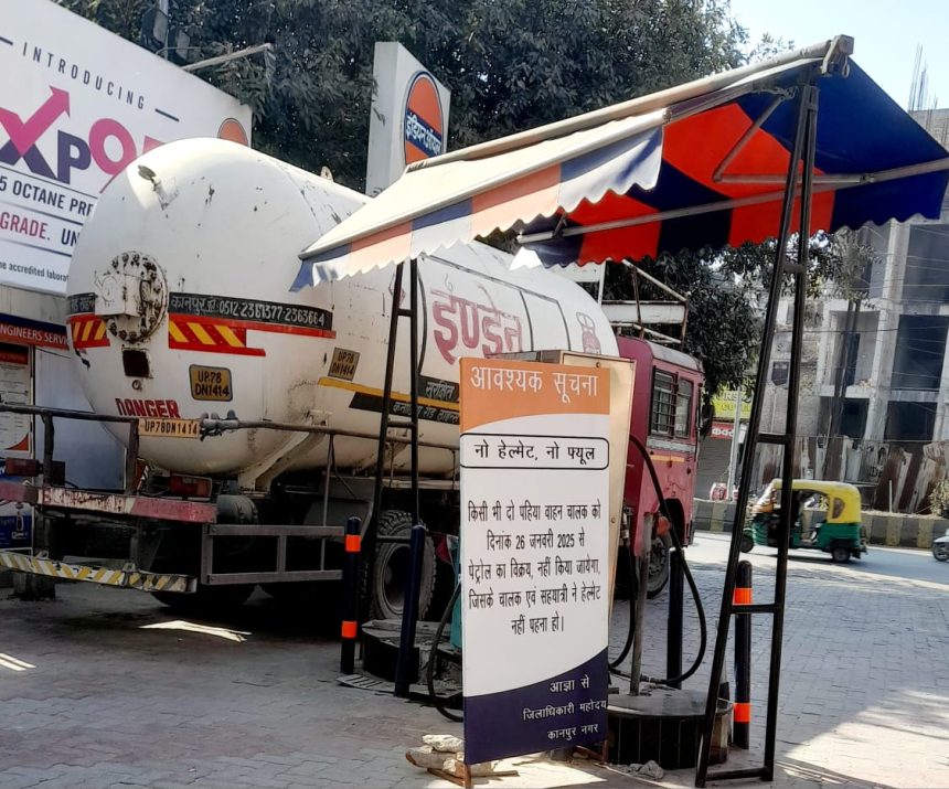 कानपुर नगर ब्रेकिंग । डीएम के आदेश का दिखने लगा असर, हर्ष नगर पेट्रोल पंप पर लगाई गई होडिंग, 26 जनवरी से “नो हेलमेट,नो फ्यूल” का किया जा रहा है।