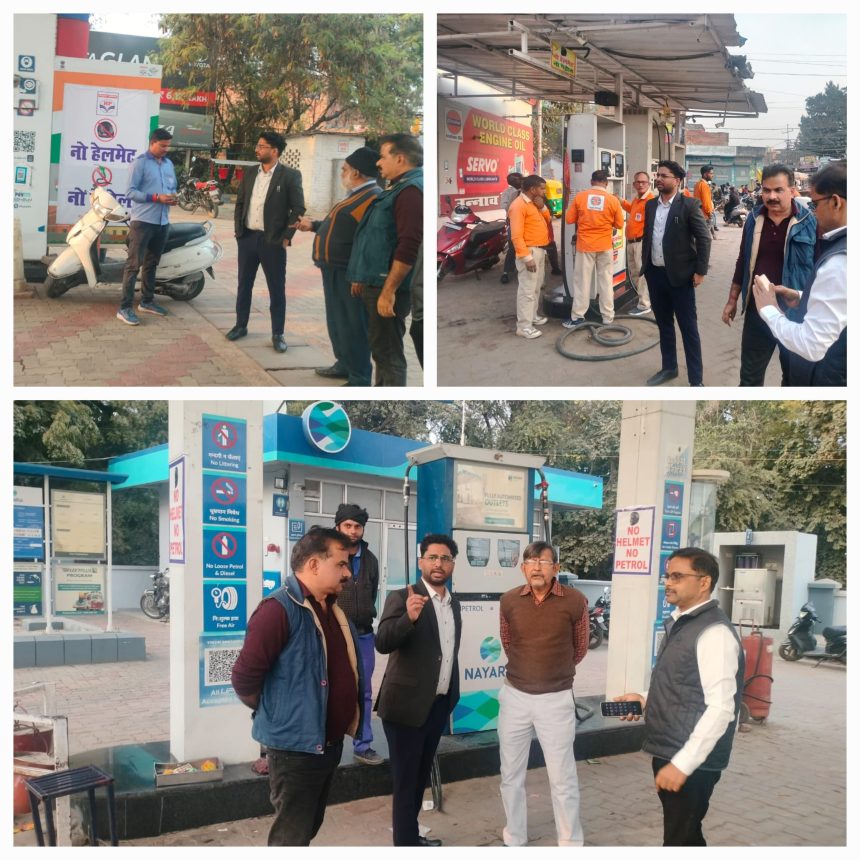 *नो हेल्मेट नो फ्यूल के अभियान तहत डीएसओ व एआरओ द्वारा कई पेट्रोल पम्पों को चेक किया गया। त्रिपाठी पेट्रोल पंप मोती नगर, राधा कृष्ण तिवारी पेट्रोल पंप, तिवारी ब्रदर्स पेट्रोल पंप सहित अन्य पेट्रोल पंप की जांच की गई।*