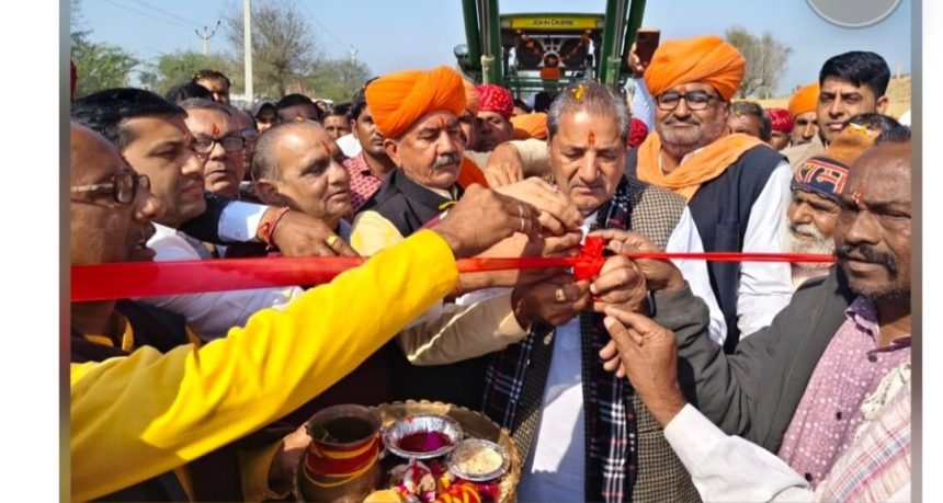 श्रीडूंगरगढ़ । उपखंड मुख्यालय श्री डूंगरगढ़ के हंसो जी धाम लिखमादेसर में भामाशाह मोहनलाल सिंघी द्वारा निर्मित भव्य द्वार का लोकार्पण किया गया। इस अवसर पर हजारों की संख्या में श्रद्धालु भक्तजन उपस्थित रहे। बेड बाजो की धुन में भक्त नाचते गाते हुए हसोजी धाम लिखमादेसर जसनाथ जी महाराज के गगन बेदी जयकारा लगाते हुए पहुंचे। जिससे पूरा पंडाल जयकारों से गूंजायमान हो गया ।एक तरफ हवन में वैदिक मंत्र उच्चारण के साथ यज्ञ आहुति देते हुए यजमान बेठे हुए थे।दूसरे तरफ भागवत कथा का बड़ा पंडाल सजाया हुआ था और भक्तों का आना लगातार बना हुआ था भामाशाह मोहनलाल सिंघी जी मूलनिवासी समंदर श्री डूंगरगढ़ हाल प्रवासी कटक द्वारा निर्मित भव्य द्वार के लोकार्पण के अवसर पर महंत भवरनाथ पूर्व विधायक मंगलाराम गोदारा भामाशाह मोहनलाल सिघी सरपंच प्रतिनिधि मुकन नाथ ने द्वारका पिता खोलकर लोकार्पण किया। उपस्थित सभी जनो ने खुशी का इजहार किया। उपस्थित जनो ने जयकारा लगाया इस दौरान जसनाथ जी महाराज हसोजी महाराज के जयकारे लगाए गए । आयोजको द्वारा पुष्प वर्षा कर स्वागत किया गया इस अवसर पर अणुव्रत समिति श्रीडूंगरगढ़ के अध्यक्ष सुमति पारख नगर पालिका प्रतिपक्ष नेता अंजू पारख मनोज पारख व्यापार मंडल के पवन राठी शेखर दुगड भंवरलाल दुगड पूनम चंद सोमानी ओसवाल पंचायत अध्यक्ष विनोद भादानी अशोक बेद समदसर निवासी चंदू भाट तथा भगवान नाथ बीरबल नाथ एमपी कलवानिया नथूनाथ ज्याणी वरिष्ठ पत्रकार शुभकरण पारीक सहित अनेक गणमान्य लोगो की उपस्थिति रही।