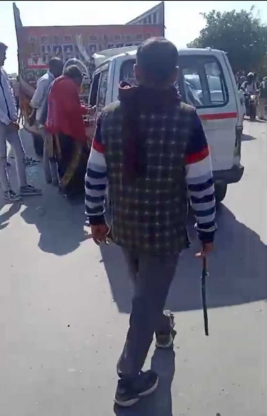 प्रत्यक्ष दर्शियों के मुताबिक जाम में खड़े वाहन में घुसी ओमनी कार।