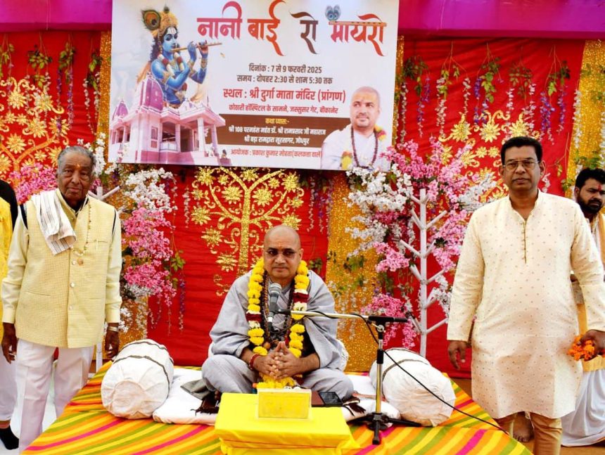 बीकानेर, 8 फरवरी। जस्सूसर गेट के बाहर अमर मार्ग पर स्थित दुर्गामाता के मंदिर में शनिवार को तीन दिवसीय ’’ नानी बाई के मायरे’’ की संगीत मय कथा के दूसरे दिन कथा वाचक जोधपुर के रामप्रसाद महाराज ने कहा कि संसार में मां का दर्जा सबसे ऊंचा होता है। माता-पिता के चरणों में सभी देव, तीर्थ रहते है। माता पिता का तिरस्कार करने वाले, उन्हें प्रताड़ित करने वाले व वृद्ध आश्रमों में छोड़ने वाले कभी परमात्म भक्ति व वास्तविक आत्मिक और भौतिक सुख नहीं प्राप्त कर सकते ।