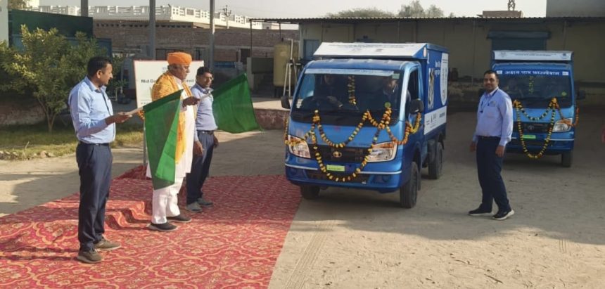 विधायक श्री जेठानंद व्यास ने अक्षय पात्र फाउंडेशन के इलेक्ट्रोनिक वाहनों को दिखाई हरी झंडी।