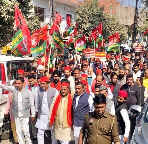 बस्ती । शुक्रवार को समाजवादी पार्टी पदाधिकारियों, जन प्रतिनिधियों ने  समाजवादी पार्टी जिलाध्यक्ष और बस्ती सदर विधायक महेन्द्रनाथ यादव के नेतृत्व में गन्ना किसानों सहित 6 मांगों को लेकर जिलाधिकारी के प्रशासनिक अधिकारी के माध्यम से राज्यपाल को ज्ञापन भेजा 6 सूत्रीय ज्ञापन में गन्ना मूल्य में 100 रूपया प्रति क्विंटल बढोत्तरी किये जाने, अयोध्या के मसौधा चीनी मिल अर्न्तगत बस्ती जनपद के गन्ना क्रय केन्द्रों पर लगातार सड़क डायवर्जन होने के कारण तौल न होने से किसानों को भारी नुकसान हो रहा है, ऐसे में वैकल्पिक व्यवस्था कर गन्ना मसौधा चीनी मिल को भेजा जाय या बस्ती के गन्ना क्रय केन्द्रों को जनपद के किसी भी चीनी मिल से जोड़कर तौल कराया जाय।  ज्ञापन में कहा गया है कि जनपद में कानून व्यवस्था ध्वस्त है, थानोें पर लूट मची है, चोरी, डकैती, हत्या की बढती घटनाओं पर अंकुश लगाने के साथ ही घटनाओं का पर्दाफांश कराकर पीड़ितों को न्याय दिलाया जाय, जल जीवन मिशन के तहत पानी की टंकी बनवाया गया है और पाइप लाइन से कनेक्शन भी दिया गया है किन्तु अनेक गावों में अभी तक पेयजल की आपूर्ति नहीं हो सकी है। जहां चालू है वहां लीकेज की समस्या है। इसे ठीक कराया जाय और जो सड़के क्षतिग्रस्त हो गई हैं उसकी मरम्मत कराया जाय, किसानों की फसलों को आवारा पशुओं से बचाकर महिलाओं के प्रति बढते अपराधों को रोकने की दिशा में प्रभावी कदम उठाया जाय।ज्ञापन देने के बाद समाजवादी पार्टी जिलाध्यक्ष और बस्ती सदर विधायक महेन्द्रनाथ यादव ने कहा कि जनपद के किसान, नौजवान परेशान है। थानों पर गरीबों को न्याय नहीं मिल पा रहा है और गन्ना किसान परेशान हैं। ऐसी स्थिति में समस्याओं का प्रभावशाली ढंग से निस्तारण कराया जाय। यदि समस्याओं का समाधान न हुआ  तो सपा निर्णायक आन्दोलन को बाध्य होगी।राज्यपाल को 6 सूत्रीय ज्ञापन भेजने के दौरान मुख्य रूप से विधायक राजेन्द्र चौधरी, कविन्द्र चौधरी ‘अतुल’, चन्द्रभूषण मिश्र, जावेद पिण्डारी, मो0 स्वालेह, समीर चौधरी, मो0 सलीम, अरविन्द सोनकर, युनूस आलम,  प्रशान्त यादव, मधुबन यादव, वीरेन्द्र चौधरी, राजेन्द्र चौरसिया, जर्सी यादव, संजय कुमार गौतम, राहुल सिंह, अजीत सिंह, कौशलेन्द्र प्रताप सिंह, एबादुल हक, अरूणेश यादव, लालजी चौहान, विवेक शुक्ल, विपिन कुमार त्रिपाठी, अजय यादव, गीता भारती, आयुष पाण्डेय, प्रिया श्रीवास्तव, रन बहादुर यादव, तूफानी यादव, भोला पाण्डेय, दिनेश तिवारी, राम प्रकाश चौधरी, मंशाराम कन्नौजिया, उर्मिला मिश्रा, शकुन्तला चौरसिया, रागिनी गौड़, हरीश, गुलाम गौस, घनश्याम यादव, सुशील यादव, कुलदीप मौर्य, राजदेव प्रसाद, निजामुद्दीन, बबिता गौतम, जोखूलाल यादव, अंशुल पटेल, कक्कू शुक्ल, रघुनन्दन राम साहू के साथ ही सप