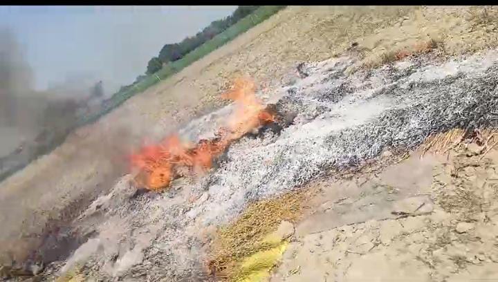 फसल जलने पर आसपास के इलाके मचा हड़कंप