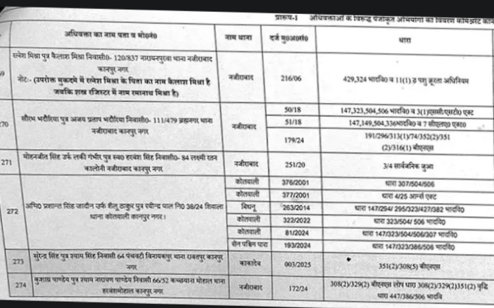 पुलिस द्वारा जारी दागी अधिवक्ताओं की सूची।पुलिस द्वारा जारी दागी अधिवक्ताओं की सूची