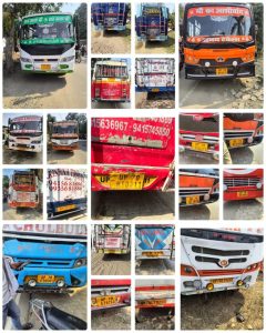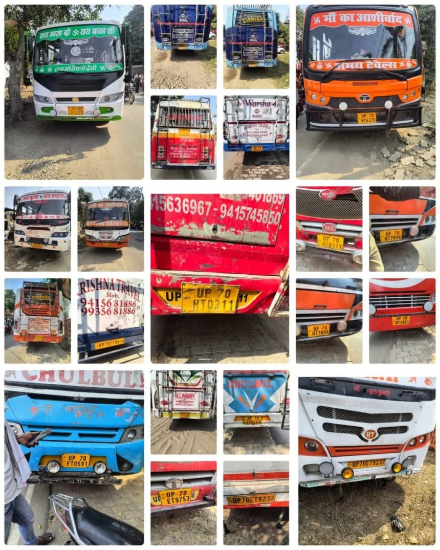 थाना नैनी पुलिस द्वारा, यातायात नियमों के उल्लंघन में 14 वाहन (बस) के विरुद्ध सीज की कार्यवाही