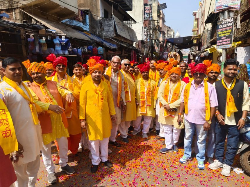 बांदा। नगर में पीताम्बर माई मंदिर का द्वितीय वार्षिकोत्सव विशाल भंडारा एवं भव्य शोभायात्रा निकाली गई। घोड़ा बग्गी में मां पीतांबरा माई और खाटूश्यामजी जी प्रतिमा विराजमान होकर नगर में भ्रमण किया। भगवान की झांकियां के रूप में भक्तों ने पूजा-अर्चना एवं रास्ते में नृत्य करते चल रहे थे। जगह-जगह लोगों ने स्वागत किया। रामलीला मैदान महेश्वरी देवी मंदिर बांदा से शोभायात्रा नगर के महेश्वरी देवी मंदिर ,सराफा बाजार गूलर नाका अलीगंज चौकी ओवरब्रिज कालु कुआं चौराहे गल्ला मंडी से सीधे तिंदवारी रोड़ स्थित पीताम्बर माई मंदिर चुन्ना का डेरा गांव स्थित मंदिर पहुंची। शोभायात्रा का नगर में जगह-जगह भव्य स्वागत किया। छतों से लोगों ने फूल बरसाकर कर बाबा के जयकारे लगाए। शोभा यात्रा में काफी संख्या में महिला व पुरुष श्रद्धालु शामिल रहे। डीजे की धुन पर बज रहे भक्ति गीतों पर पूरे रास्ते नाचते हुए चलते रहे। इस दौरान सुरक्षा को लेकर पुलिस के व्यापक इंतजाम रहे। जगह-जगह सड़क किनारे खाने-पीने के स्टॉल लगाए गए थे। लोगों ने बाबा की पूजा अर्चना कर मनौती मानी। और भंडारे का प्रसाद चखा। शाम को भजन संध्या का आयोजन किया जाएगा। इस मौके पर शोभायात्रा में शामिल अनुराग ,मालती बासु,रजत सेठ ,अंकित बासु,राजकुमार राज, अमित सेठ भोलू,पप्पू शिवहरे रवि शिवहरे, सत्यकेतु , विनोद द्विवेदी मोंटू गुप्ता वीरेंद्र गुप्ता सुधीर तिवारी ,पप्पू पटेल संतोष राजपूत,कल्लू राजपूत अम्बरीष त्रिपाठी ,अमित गुप्ता,संजय ककोनिया शिवकुमार बड़कू भाइया, सुनील सक्सेना राजू त्रिपाठी आदि मौजूद रहे।