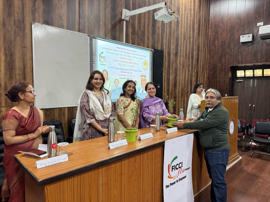 दयानंद एंग्लो-वैदिक (पी जी) कॉलेज में दिनांक 06 मार्च 2025 को फिक्की कानपुर चैप्टर के प्रोजेक्ट पंख के अंतर्गत सेनेटरी पैड वेंडिंग मशीन का शुभारंभ किया गया। इसके उपरांत डॉ. नागेंद्र स्वरूप स्मार्ट लेक्चर हॉल में कार्यक्रम का उद्घाटन महाविद्यालय के प्राचार्य, प्रोफेसर अरुण कुमार दीक्षित जी, डी.एस.डब्लू. पंकज टंडन एवं आई.सी.सी. कनवीनर प्रमिला त्रिपाठी द्वारा सरस्वती प्रतिमा पर मालार्पण एवं दीप प्रज्वलन से हुआ। सभी मेहमान का स्वागत प्राचार्य जी द्वारा किया गया। कार्यक्रम से संबंधित जरूरी जानकारिया डी.एस.डब्लू. पंकज टंडन जी द्वारा दी गई तथा प्रमिला त्रिपाठी जी द्वारा निजी स्वच्छता की आवश्यकता के संबंध में बताया गया। डॉक्टर रितु बुधवार (MS), स्त्री रोग विशेषज्ञ द्वारा निजी स्वच्छता के महत्व एवं स्त्री रोगों से संबंधित व्याख्यान एवं जरूरी जानकारिया दी गई। इस कार्यक्रम में फिक्की कानपुर चैप्टर की चेयरपर्सन नलिनी सनवाल, इवेंट चेयर प्रोजेक्ट पंख पारुल राजौरिया, आईसीसी पोश के सभी सदस्य, महाविद्यालय की सभी शिक्षिका एवं छात्रायें उपस्थित रही। कार्यक्रम का संचालन डॉ. प्रतिभा त्रिपाठी एवं धन्यवाद ज्ञापन डॉ. सभ्यता द्वारा किया गया।
