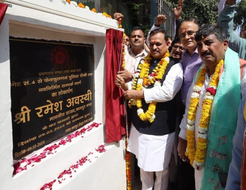 आज दिनांक 09.03.25 को कानपुर सेंट्रल के कैंट साइड गेट संख्या 04 से फेथफुलगंज पुलिस चौकी तक नवनिर्मित सम्पर्क मार्ग का लोकार्पण श्री रमेश अवस्थी माननीय सांसद लोकसभा कानपुर के द्वारा किया गया। इस अवसर पर कानपुर सेंट्रल स्टेशन पर आयोजित कार्यक्रम मे सर्वप्रथम स्टेशन निदेशक कानपुर सेंट्रल श्री आशुतोष सिंह के द्वारा माननीय सांसद के साथ अन्य गणमान्य व्यक्तियों का शाल तथा प्लांटर देकर स्वागत किया गया। माननीय सांसद महोदय द्वारा स्टेशन पर साफ सफाई तथा रेल प्रशासन द्वारा यात्री सुविधाओं हेतु तय समय सीमा मे किये जा रहे कार्यों की प्रशंसा की गयी। इस दौरान जिलाध्यक्ष दक्षिण श्री शिवराम सिंह जी , श्री रघुनंदन भदौरिया पूर्व विधायक कैंट सहित अन्य गण मान्य व्यक्तियों सहित रेलवे अधिकारी, कर्मचारी गण मौजूद रहे। मंच संचालन श्री संतोष त्रिपाठी सहायक वाणिज्य प्रबंधक, कानपुर सेंट्रल द्वारा किया गया।