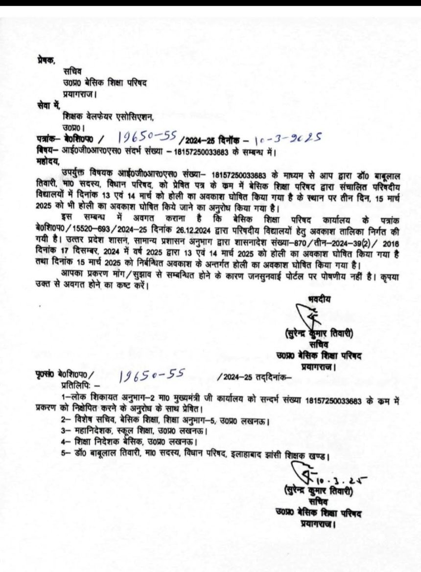 *परिषदीय विद्यालयों में 15/03/2025 को अवकाश घोषित।*