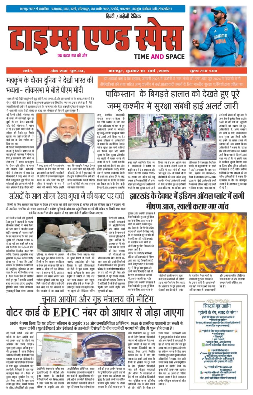 Daily E-paper 19.03.2025 Last updated: 2025/03/19 at 11:26 AM timesandspace Share 0 Min Read SHARE 19.03.2025 You Might Also Like 28.11.2025 27.11.2025 26.11.2025 22.09.2025 20.09.2025 Share This Article Facebook Twitter Copy Link Print Leave a comment Leave a comment Leave a Reply Cancel replyYour email address will not be published. Required fields are marked *Comment * Name * Email * Website Save my name, email, and website in this browser for the next time I comment. E-Magazine 14.07.2025 Monthly E-magazine 05.06.2025 Monthly E-magazine Advertisements E-paper 28.11.2025 Daily E-paper 27.11.2025 Daily E-paper क्या सीमा हैदर को वापस पाकिस्तान भेजा जाना चाहिए? हाँ ना View Results Loading ... Track all markets on TradingView More forecasts: London 30 days weather