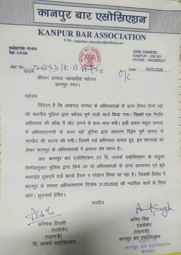 आवश्यक सूचना:- कानपुर बार एसोसिएशन व लायर्स एसोसिएशन के संयुक्त निर्णयानुसार
