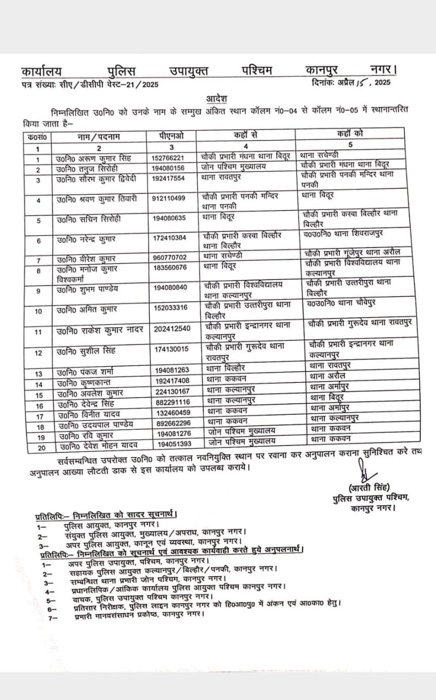 *कानपुर कमिश्नरेट के पश्चिमी जोन में उप निरीक्षक के हुए तबादले*