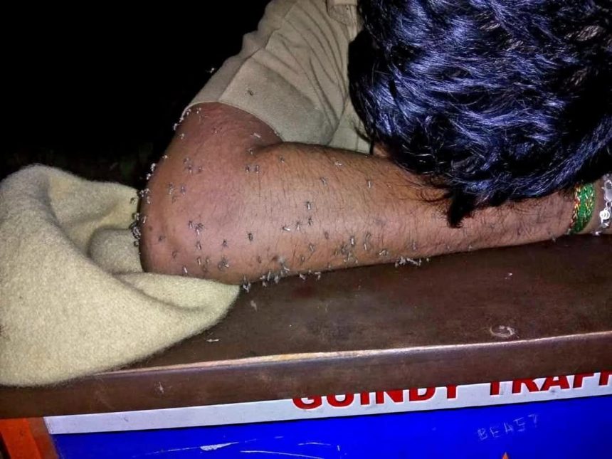 यह तस्वीर भी एक पुलिसकर्मी की है जिसकी बांह पर एक सैकड़ा मच्छर बैठकर खून पी रहे है