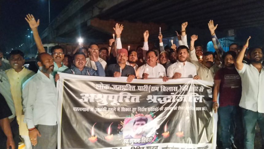 लोक जनशक्ति पार्टी रामविलास ने आतंकवाद का फूंका पुतला निकाला कैंडल मार्च