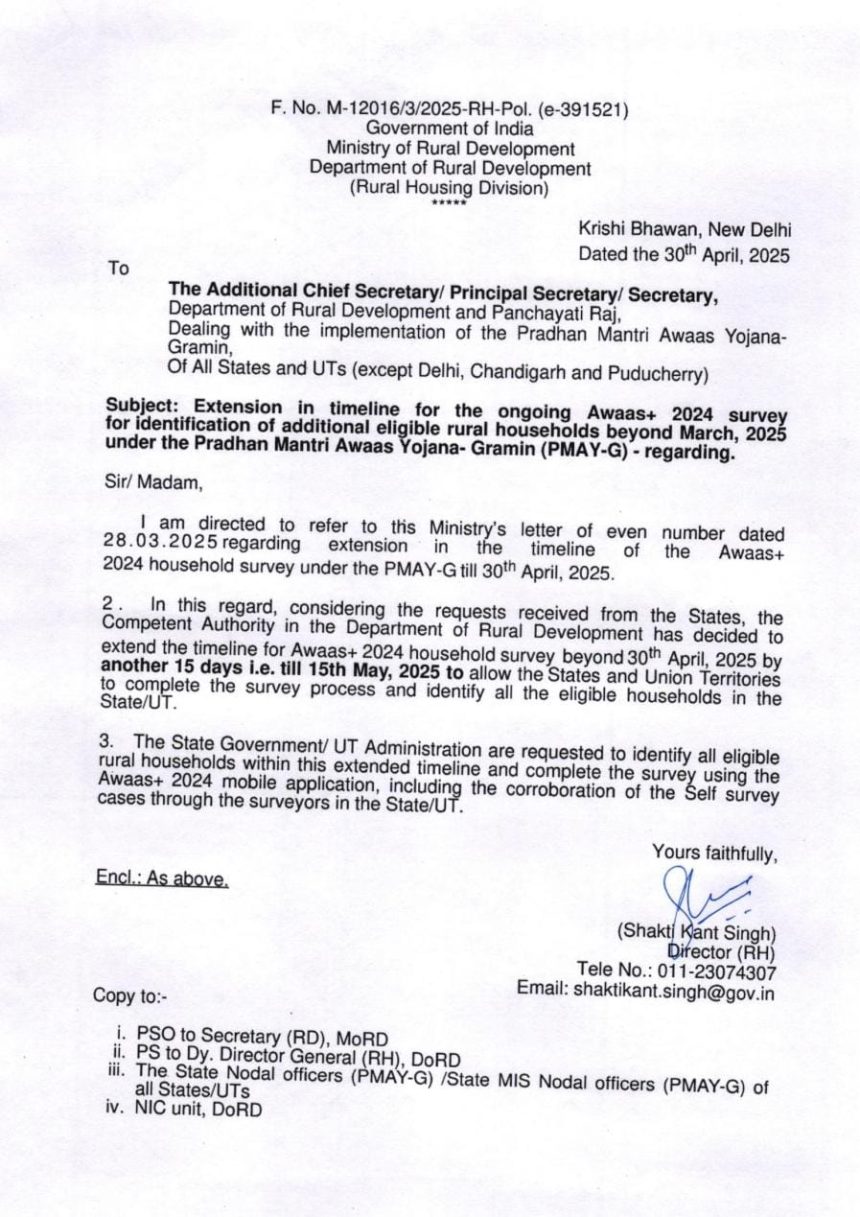 *BRIKING NEWS* *PM आवास सर्वे की तिथि 15 मई तक बढ़ाई गयी…*
