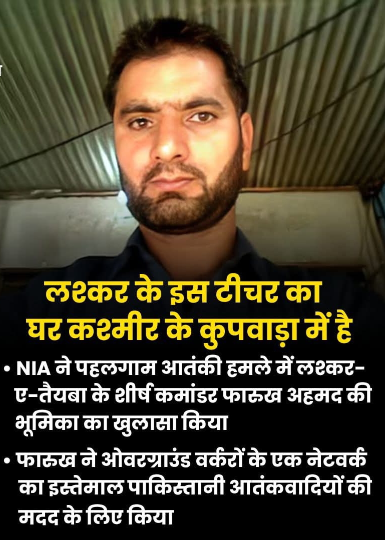 NIA ने पहलगाम आतंकी हमले में लश्कर-ए-तैयबा के शीर्ष कमांडर फारुख अहमद की भूमिका का खुलासा किया है।