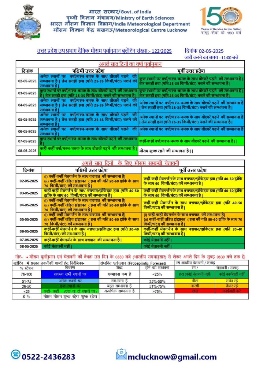 *यूपी में मौसम का कहर, बारिश और बिजली गिरने का अलर्ट जारी*