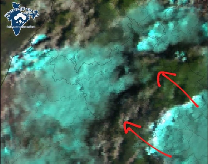 अगले 1 से 3 घंटों में बुलंदशहर, मथुरा, नोएडा, गाजियाबाद, हापुड़, मेरठ, बागपत, दिल्ली, पलवल, फरीदाबाद, गुड़गांव, नूंह और अलवर जिले में दक्षिणपूर्व से आती काली घनन-घनन घटाओ के साथ हल्की से मध्यम बारिश होगी, कुछ जगह भारी बारिश भी संभव है।