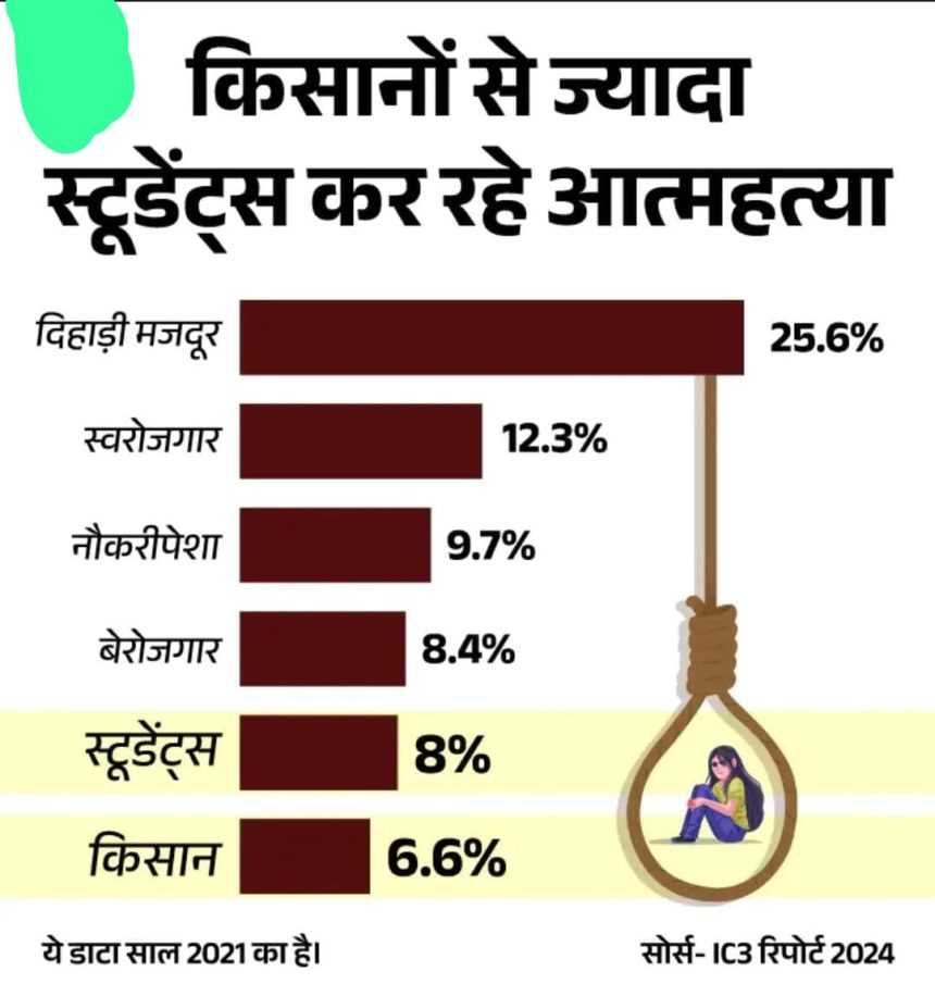 _`” जब युवा बच्चे पढ़ाई के बोझ, समाज के तानों, मानसिक तनाव और स्कूल-कॉलेज की बेरुखी जैसी वजहों से अपनी जान दे रहे हैं तो यह साफ दिखाता है कि हमारी पूरी व्यवस्था कहीं न कहीं फेल हो रही है।”`_