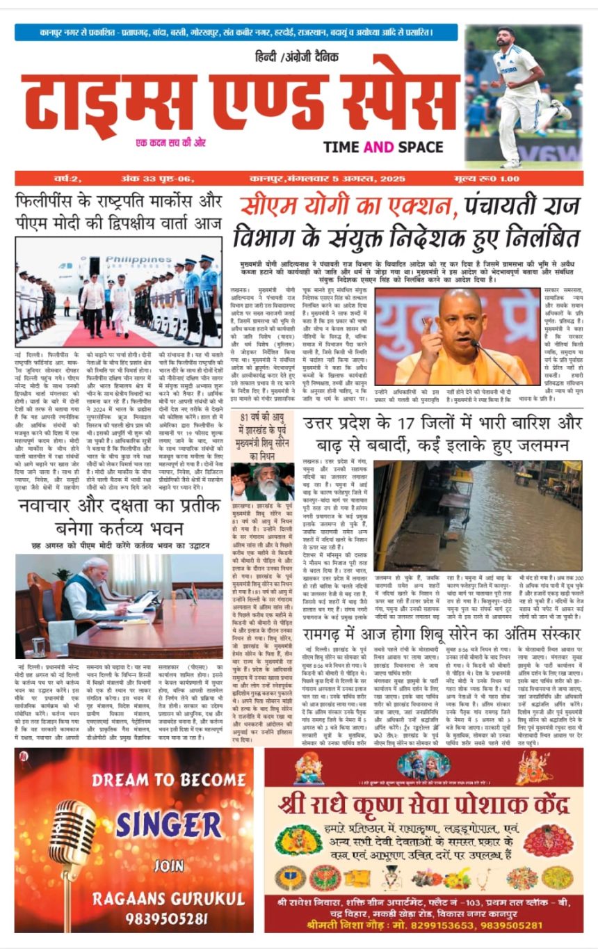 Daily E-paper 05.08.2025 Last updated: 2025/08/05 at 10:34 AM timesandspace Share 0 Min Read SHARE 05.08.2025 You Might Also Like 28.11.2025 27.11.2025 26.11.2025 22.09.2025 20.09.2025 Share This Article Facebook Twitter Copy Link Print Leave a comment Leave a comment Leave a Reply Cancel replyYour email address will not be published. Required fields are marked *Comment * Name * Email * Website Save my name, email, and website in this browser for the next time I comment. E-Magazine 14.07.2025 Monthly E-magazine 05.06.2025 Monthly E-magazine Advertisements E-paper 28.11.2025 Daily E-paper 27.11.2025 Daily E-paper क्या सीमा हैदर को वापस पाकिस्तान भेजा जाना चाहिए? हाँ ना View Results Loading ... Track all markets on TradingView More forecasts: London 30 days weather