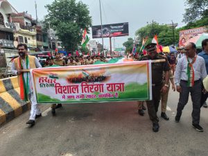 आज दिनांक 13 अगस्त 2025 को हर घर तिरंगा घर-घर तिरंगा की थीम पर 57 एनसीसी बटालियन उन्नाव के प्रशासनिक अधिकारी लेफ्टिनेंट कर्नल विवेक पांडे के निर्देशन में एनसीसी कैडेटो द्वारा एक भव्य तिरंगा यात्रा का आयोजन किया। इस तिरंगा यात्रा में मुख्य आकर्षण 151 मीटर लंबा तिरंगा रहा कार्यक्रम की भव्यता को बढ़ाने के लिए आर्मी बैंड ने प्रतिभाग किया ।आर्मी बैंड की धुन पर गर्ल्स कैडेट राइफल के साथ थिरक रही थी । तिरंगा यात्रा में उन्नाव जनपद के विद्यालयों के एनसीसी कैडेटो ने बढ़-चढ़कर हिस्सा लिया। कार्यक्रम का संयोजन डी.एस.एन. महाविद्यालय उन्नाव के ANO लेफ्टिनेंट डॉक्टर विपिन सिंह ने किया। 151 मी. लंबे तिरंगा लेफ्टिनेंट रवि रंजन लेफ्टिनेंट नितेश तिवारी लेफ्टिनेंट अतुल शुक्ल एवं लेफ्टिनेंट शशिकांत के निर्देशन में ले जाया गया।संपूर्ण तिरंगा यात्रा में सैकड़ों की संख्या में एनसीसी कैडेट भारत माता की जय के उद्घोष करते हुए चल रहे थे । एनसीसी कैडेट ने राइफल ड्रिल की तथा शेष कैडेट भिन्न-भिन्न प्रकार के कार्यक्रम यात्रा के दौरान कर रहे थे। कैडेटों ने पिरामिड बनाकर कार्यक्रम को भव्यता प्रदान की। क्रेडिट तूने जिस प्रकार ऑपरेशन सिंदूर के माध्यम से माननीय प्रधानमंत्री जी ने उत्साह का संदेश दिया है उसे उल्लास पूर्वक मनाने के लिए राइफल के साथ नृत्य कर खुशियां भी मनाई तिरंगा यात्रा में डी एस एन महाविद्यालय उन्नाव, राजकीय आईटीआई उन्नाव , राजकीय बालिका इंटर कॉलेज उन्नाव, निरंजन सिंह महाविद्यालय,सरस्वती विद्या मंदिर इंटर कॉलेज शुक्लागंज , स्वामी विवेकानंद कॉलेज आफ हायर स्टडीज शुक्लागंज , चौधरी खजान सिंह महाविद्यालय उन्नाव के एनसीसी कैडेट ने प्रतिभाग किया ।