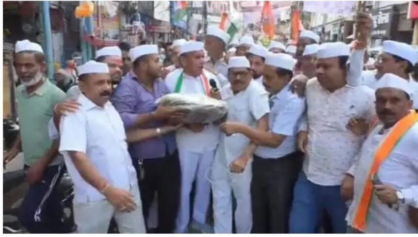 दरअसल, रविवार को बीजेपी कार्यकर्ताओं ने तिलक हाल घेरने की रणनीति बनाई थी। बड़ी संख्या में विधायक, मेयर और अन्य कार्यकर्ता वहां पहुंचे थे, लेकिन पुलिस ने एहतियातन बैरिकेडिंग कर रास्ता रोक दिया। आरोप है कि इस दौरान बीजेपी कार्यकर्ताओं ने ठेले वाले की सब्जियां उठाकर कांग्रेस कार्यकर्ताओं पर फेंकीं, जिससे ठेले वाले को काफी नुकसान हुआ। इसी घटना के विरोध में कांग्रेसियों ने अनोखा तरीका अपनाया।