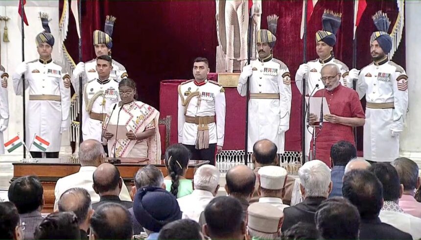 नवनिर्वाचित उपराष्ट्रपति सीपी राधाकृष्णन को महामहिम राष्ट्रपति द्रौपदी मुर्मू जी ने दिलाई पद और गोपनीयता की शपथ।