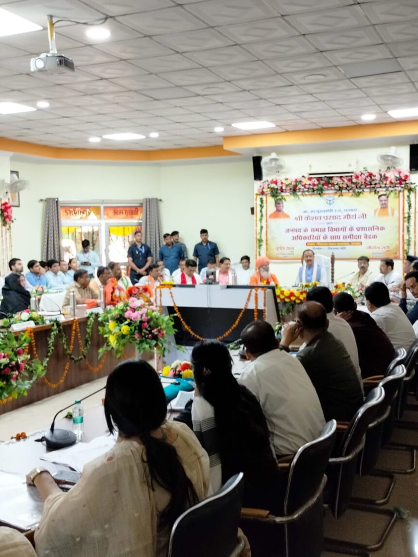 आज दिनांक 13/8/025 को विकास भवन में,उप मुख्यमंत्री माननीय केशव प्रसाद मौर्य जी ने,जिले के विकास से संबंधित सभी जनप्रतिनिधियों के सुझाव एवं विभागों के अधिकारियों की समीक्षा बैठक ली।