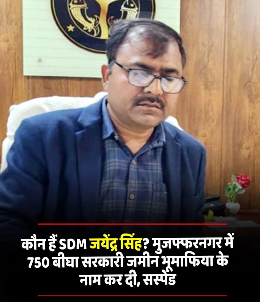 यूपी में मुजफ्फरनगर के जानसठ तहसील में 750 बीघा सरकारी जमीन घोटाले में दोषी पाए जाने पर एसडीएम जयेंद्र सिंह को तत्काल प्रभाव से निलंबित कर दिया गया। एसडीएम पर आरोप लगे हैं कि उन्होंने सरकारी जमीन को भूमाफिया के नाम दर्ज कर दिया। डीएम की जांच रिपोर्ट के बाद शासन ने यह कड़ी कार्रवाई की है.