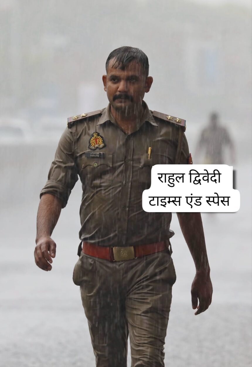 *मेट्रो पुल के नीचे सैकड़ों लोग बारिश से बचने के लिए पनाह लिए खड़े थे। पुलिस ने सबको हटाने की कोशिश की, कुछ लोग हट भी गए, मगर कई वहीं जमे रहे। बारिश का पानी और लोगों की भीड़ मिलकर रास्ते को और मुश्किल बना रहे थे। तभी एक पुलिसकर्मी उस तेज़ बारिश में आगे बढ़ा, मोर्चा संभाला और अपनी कोशिशों से रास्ता खाली कराया, अपनी सेवाओं को भीगते हुए कार्य को अंजाम देता दिखा*।