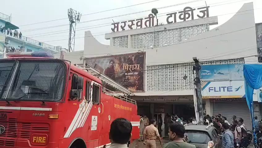 सरस्वती टॉकीज में भीषण आग, शॉर्ट सर्किट से लाखों के नुकसान की आशंका, फायर ब्रिगेड के पहुंचने से पहले लोगों ने शुरू किया बचाव
