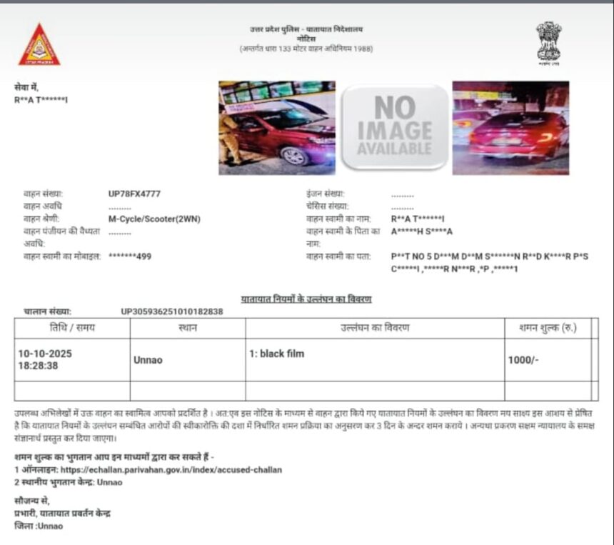*जिस तरह से कानपुर में अरमापुर थाना प्रभारी मनोज पांडेय द्वारा कुछ दिनों पहले फर्जी तरीके से निर्दोषों पर कार्यवाही कर दी गई थी तो वहीं अब उन्नाव में ट्रैफिक पुलिस ने मोटर साइकिल पर चलान काली फिल्म चढ़ाने का कर दिया*
