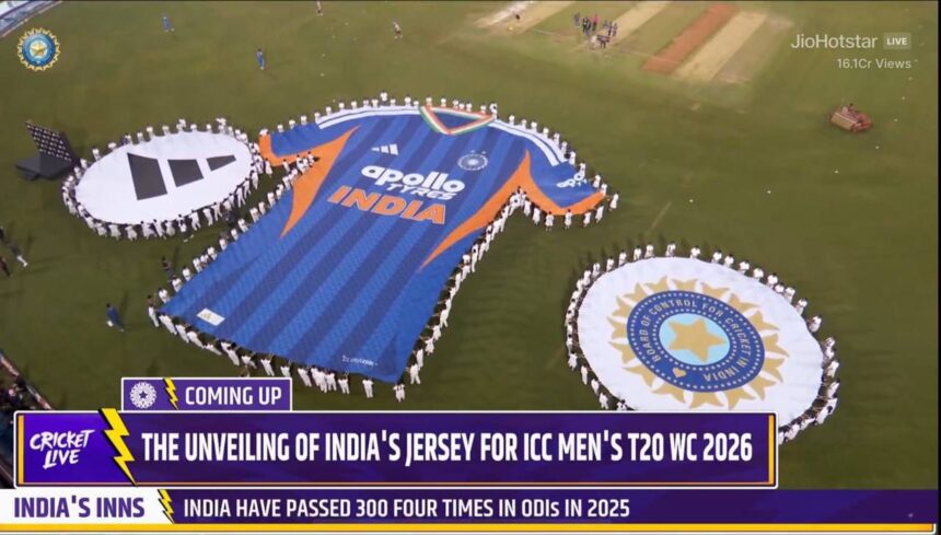 भारतीय क्रिकेट कंट्रोल बोर्ड (बीसीसीआई) ने आईसीसी टी20 वर्ल्ड कप 2026 के लिए टीम इंडिया की नई जर्सी का अनावरण कर दिया है। इस नई जर्सी को भारत और दक्षिण अफ्रीका के बीच रायपुर में चल रहे दूसरे वनडे मैच के इनिंग्स ब्रेक के दौरान लॉन्च किया गया। इस नई जर्सी को लेकर फैंस के बीच चर्चाओं का माहौल गर्म है।