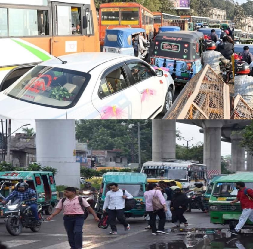 *बसें सड़क पर खड़ी कर घंटों सवारियाँ भरना, पुल पर अवैध ऑटो स्टैंड और यातायात पुलिस की बेबसी,सब कुछ जनता पर भारी*।
