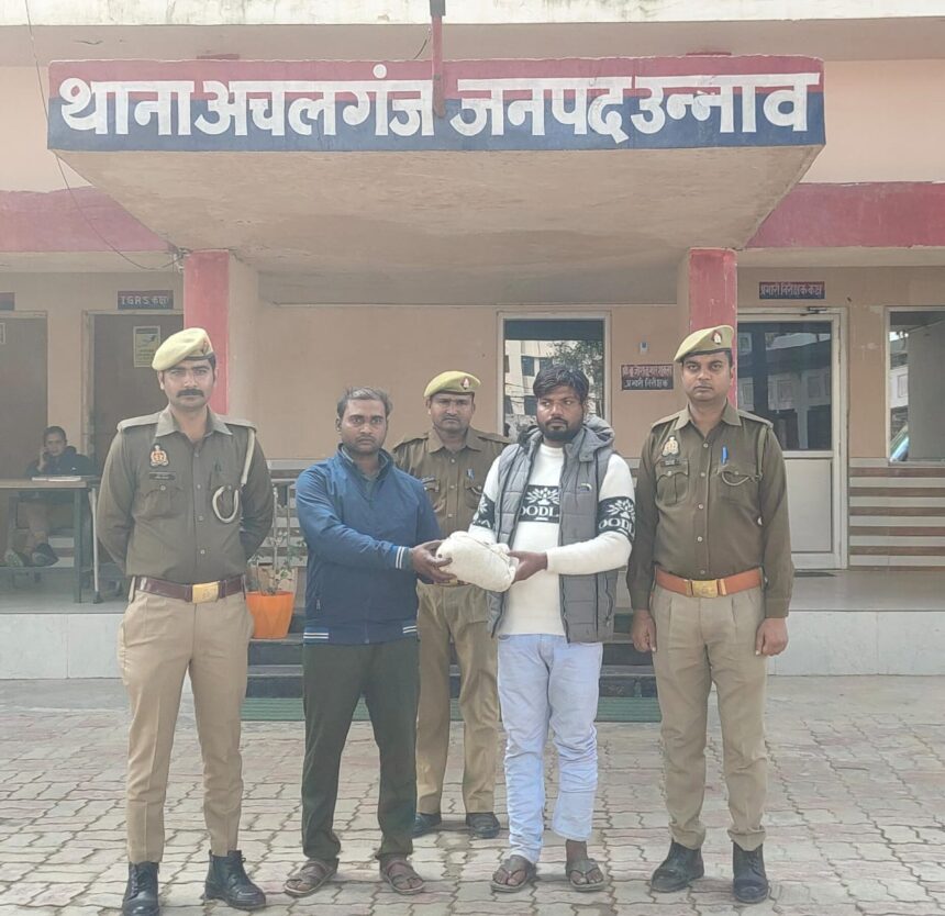 *संक्षिप्त विवरण-* दिनांक 14.12.2025 को वादी मुकदमा श्री रामसजीवन पाल पुत्र मोहनलाल निवासी ग्राम बलियाखेडा थाना अचलगंज जनपद उन्नाव ने थाना अचलगंज पर तहरीर दी कि दिनांक 12.12.2025 को मेरा पुत्र सुधीर पाल उम्र 24 वर्ष घर से बिना बताये गांव के ही रंजीत वर्मा पुत्र रामचन्द्र वर्मा उम्र करीब 27 वर्ष के साथ कही चला गया था। काफी ढूंढा गया तो दिनांक 14.12.2025 को मेरा पुत्र मेडीलाल के खेत में मृत अवस्था में पड़ा मिला। प्राप्त तहरीर के आधार पर थाना अचलगंज पर मु0अ0सं0 670/2025 धारा 3(5), 103(1),238 बीएनएस बनाम 1.रंजीत वर्मा पुत्र रामचन्द्र वर्मा नि0 ग्राम बलियाखेडा थाना अचलगंज उन्नाव 2.डाक्टर नाम अज्ञात निवासी बलिया खेड़ा पंजीकृत किया गया। दौराने विवेचना दिनांक 14.12.2025 को प्रभारी निरीक्षक मय हमराह पुलिस फोर्स द्वारा अभियुक्तगण 1.रंजीत वर्मा पुत्र रामचन्द्र वर्मा उम्र करीब 27 वर्ष निवासी ग्राम बलियाखेडा थाना अचलगंज उन्नाव 2.संदीप पुत्र सुखलाल निषाद उम्र करीब 28 निवासी भोपालपुरवा मजरा ख्योरा कटरी थाना नबाबगंज जनपद कानपुर नगर को कब्जे से घटना में प्रयुक्त कपड़े का टुकड़ा बरामद कर ग्राम कंचनखेड़ा मोड़ से गिरफ्तार किया गया। दौराने जांच व पुछताछ में पाया कि मृतक सुधीर उपरोक्त व अभियुक्त संदीप उपरोक्त का एक ही लड़की से प्रेम संबंध था, जिसके चलते अभियुक्त संदीप ने अपने दोस्त रंजीत वर्मा के साथ मिलकर सुधीर की कपड़े के फंदे से गला घोटकर हत्या कर दी। गिरफ्तार अभियुक्तगण को माननीय न्यायालय के समक्ष पेश किया जा रहा है।