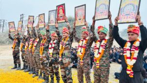 आर्मी में चयन के बाद सभी छात्रों ने मन्दिर पहुंच माथा टेका। हुई पुष्प वर्षा
