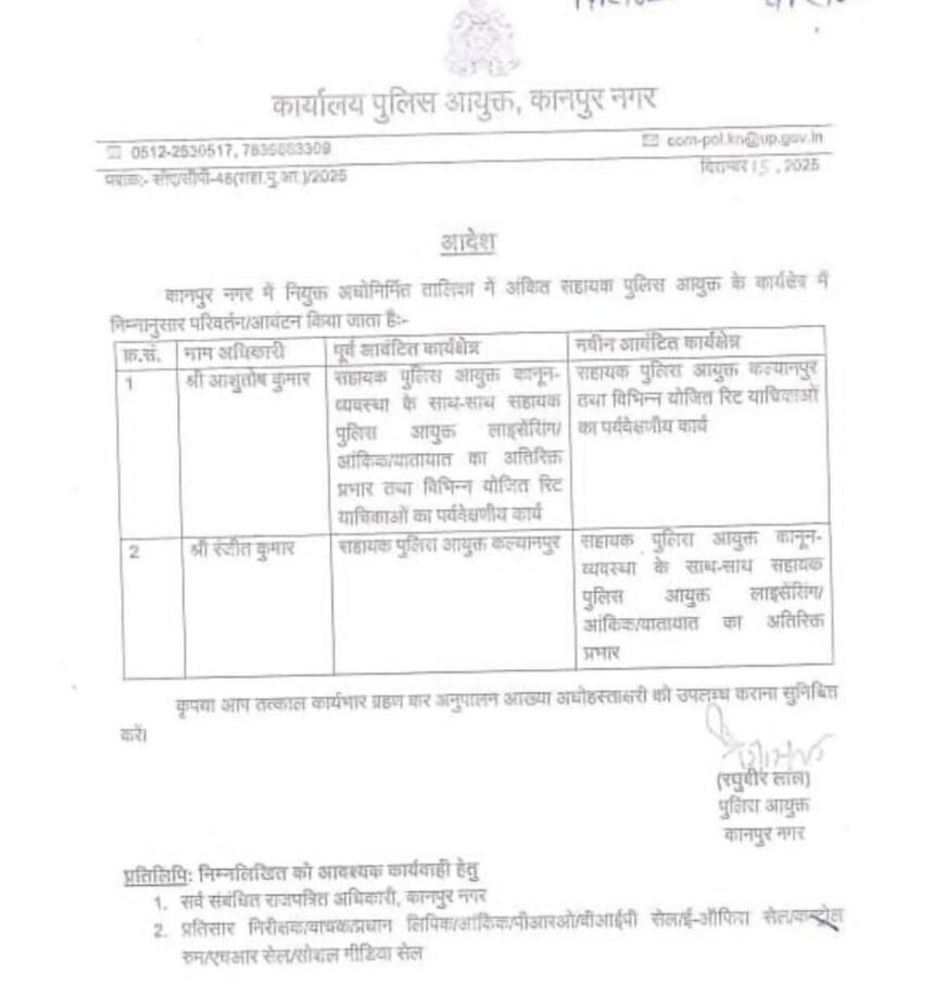 पुलिस कमिश्नर रघुवीर लाल के निर्देश पर एसीपी मुख्यालय को कल्याणपुर सर्किल की कुछ दिनों के लिए अतिरिक्त जिम्मेदारी दिए जाने की चर्चा तेज हो गई है। पुलिस विभाग के सूत्रों के अनुसार यह व्यवस्था अस्थायी रूप से की जा सकती है, ताकि क्षेत्र में कानून-व्यवस्था को और अधिक मजबूत किया जा सके।*