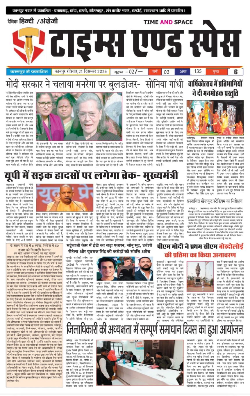 Uncategorized 21.12.2025 Last updated: 2025/12/21 at 10:06 AM timesandspace Share 0 Min Read SHARE 21.12.2025 You Might Also Like कानपुर * उत्तर प्रदेश में चल रही आशा बहनों की हड़ताल होगी अब बेअसर, नर्सिंग छात्र संभालेंगे अभियान * *कानपुर कमिश्नरी पुलिस की अपराध पर अब पैनी नज़र,, नशे के सौदागरों की धरपकड़ हुई तेज़ जबरदस्त कोहरे और शीतलहर की चपेट में उत्तर भारत सुबह की देश राज्यों से बड़ी खबरें* *21- दिसंबर – रविवार * *रविवार, 21 दिसम्बर 2025 के मुख्य समाचार* Share This Article Facebook Twitter Copy Link Print Leave a comment Leave a comment Leave a Reply Cancel replyYour email address will not be published. Required fields are marked *Comment * Name * Email * Website Save my name, email, and website in this browser for the next time I comment. E-Magazine 14.07.2025 Monthly E-magazine 05.06.2025 Monthly E-magazine Advertisements E-paper 12.12.2025 Daily E-paper 11.12.2025 Daily E-paper क्या सीमा हैदर को वापस पाकिस्तान भेजा जाना चाहिए? हाँ ना View Results Loading ... Track all markets on TradingView More forecasts: London 30 days weather