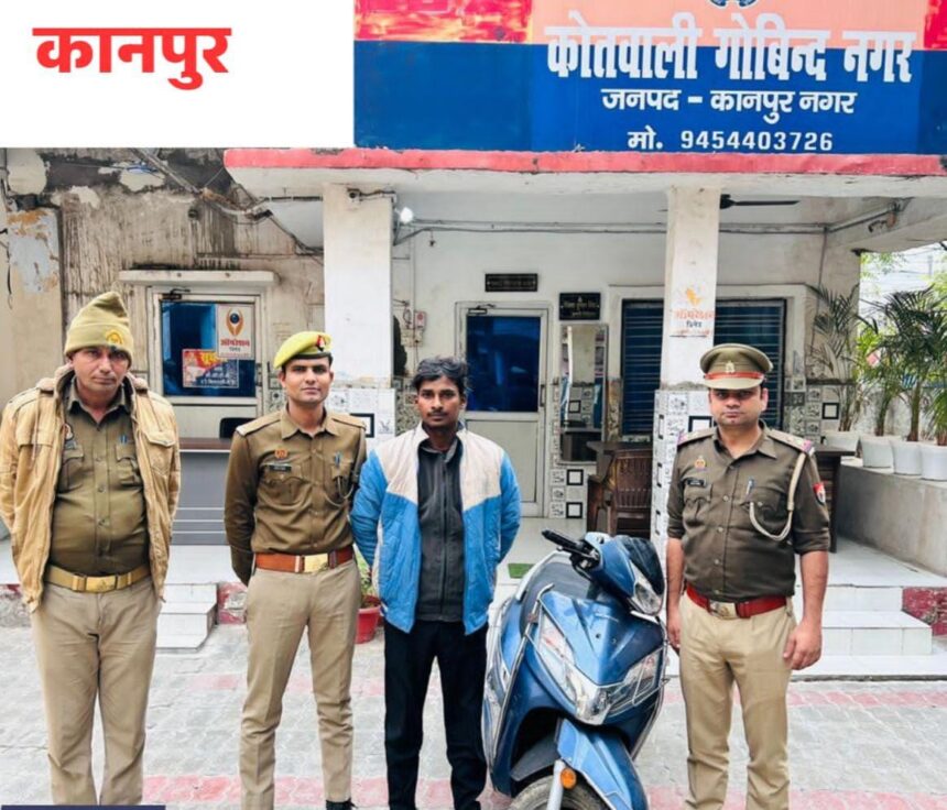 गोविन्द नगर पुलिस टीम ने मुखबिर की सूचना पर निराला नगर ग्राउंड के पीछे से एक वाहन चोर को चोरी की स्कूटी के साथ रंगे हाथों गिरफ्तार किया।*