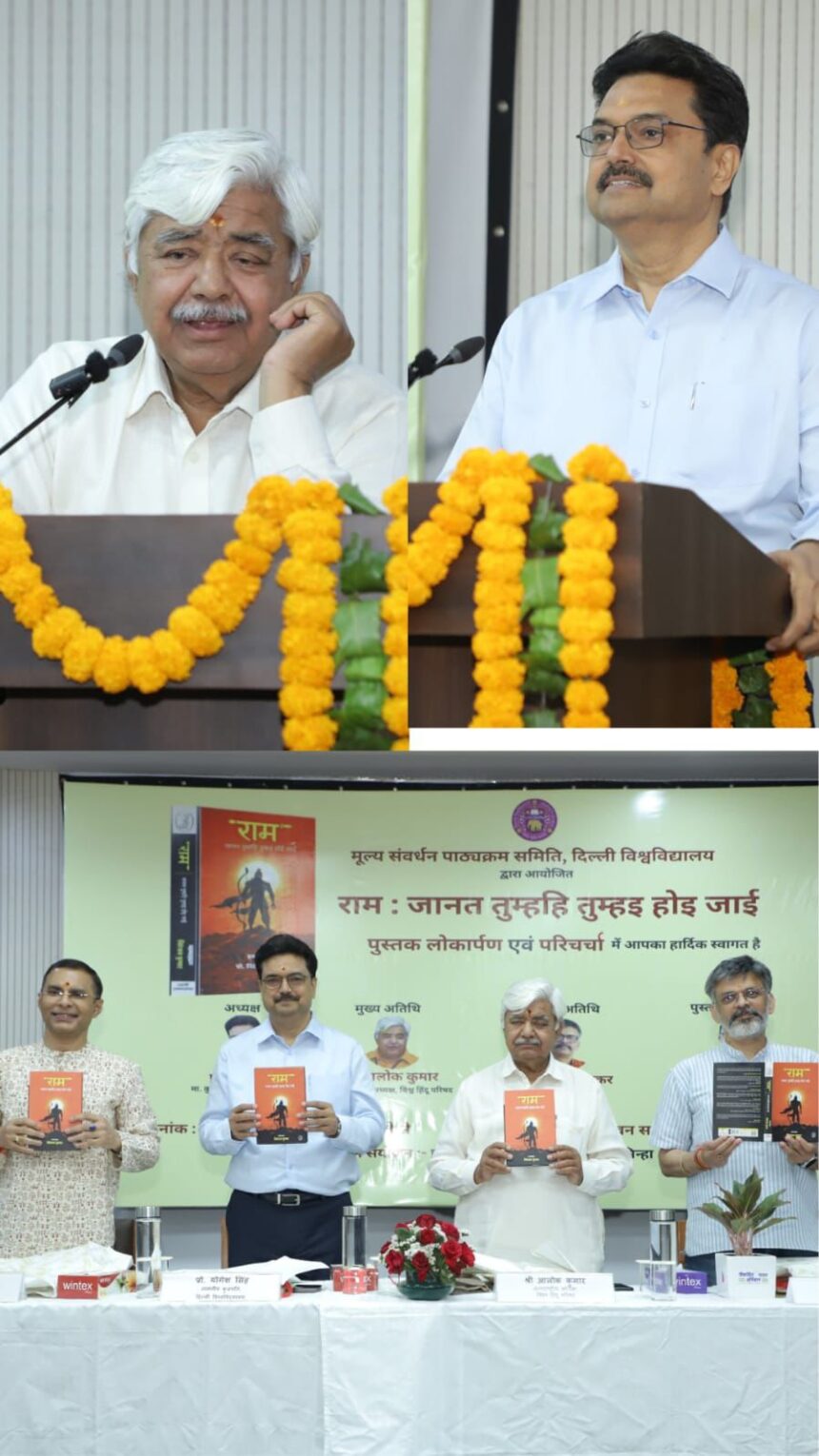 दिल्ली विश्वविद्यालय के महर्षि कणाद भवन सभागार में प्रोफेसर निरंजन कुमार द्वारा संपादित पुस्तक “राम: जानत तुम्हहि तुम्हइ होइ जाई” का लोकार्पण एवं परिचर्चा कार्यक्रम सफलतापूर्वक संपन्न हुआ। इस कार्यक्रम का आयोजन दिल्ली विश्वविद्यालय की मूल्य संवर्धन पाठ्यक्रम समिति द्वारा किया गया। कार्यक्रम के मुख्य अतिथि विश्व हिंदू परिषद के अंतरराष्ट्रीय अध्यक्ष श्री आलोक कुमार;विशिष्ट अतिथि ऑर्गनाइजर पत्रिका के संपादक श्री प्रफुल्ल केतकर;कार्यक्रम के अध्यक्ष दिल्ली विश्वविद्यालय के कुलपति प्रो.योगेश सिंह; पुस्तक के संपादक एवं कार्यक्रम संयोजक प्रो. निरंजन कुमार की गरिमामयी उपस्थिति रही।