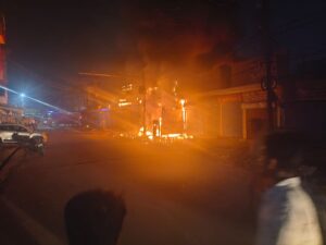 ईदगाह चौराहे पर सनशाइन ऑटो गैराज पर भीषण आग लग गई जिसकी वजह से काई कार जलकर रख हुई।